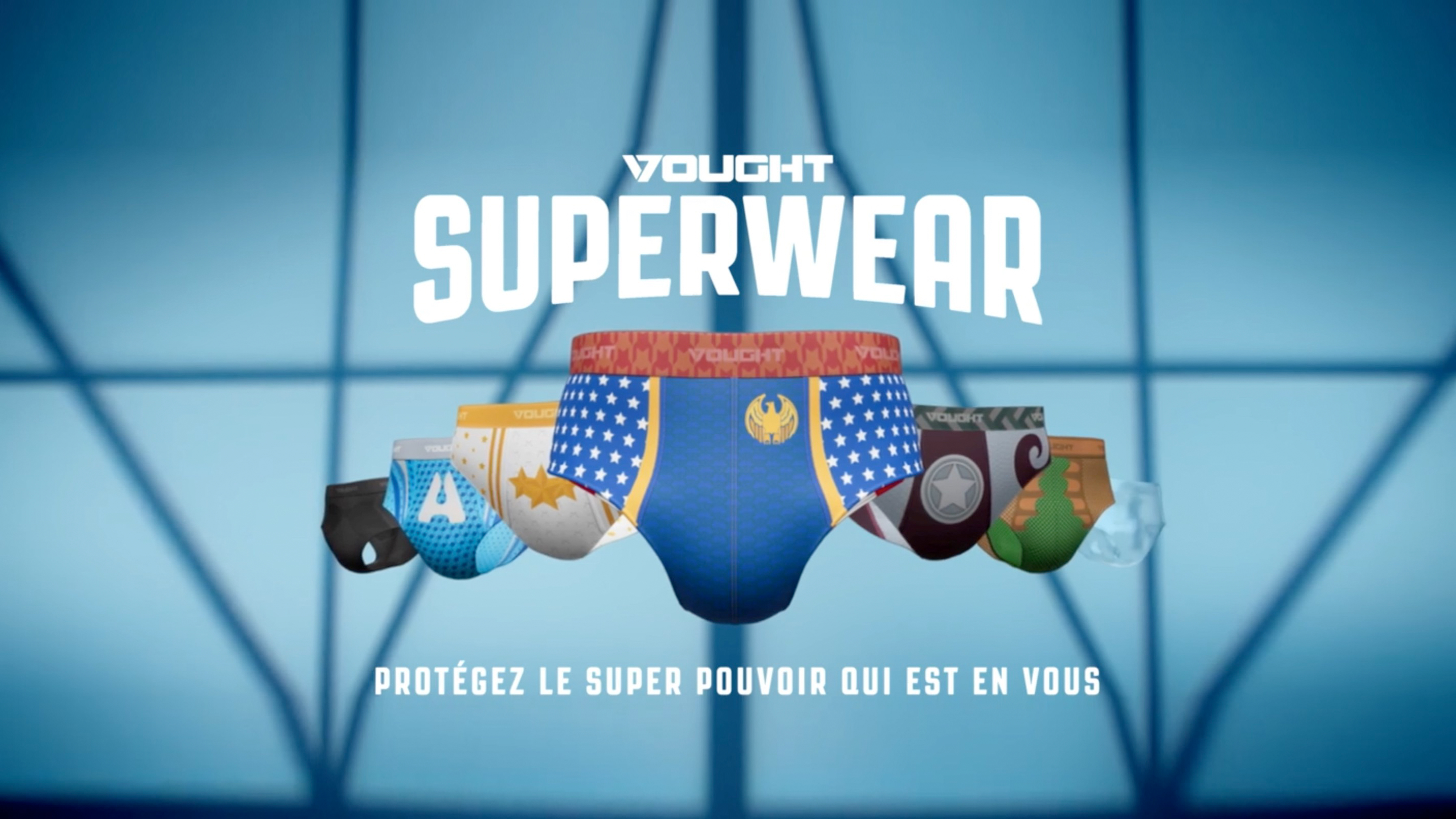 A collection of underwear signed by Vought International (the company in charge of the superheroes in the series) and composed of 3 panties and 4 briefs in the colours of the 7 superheroes of the series.