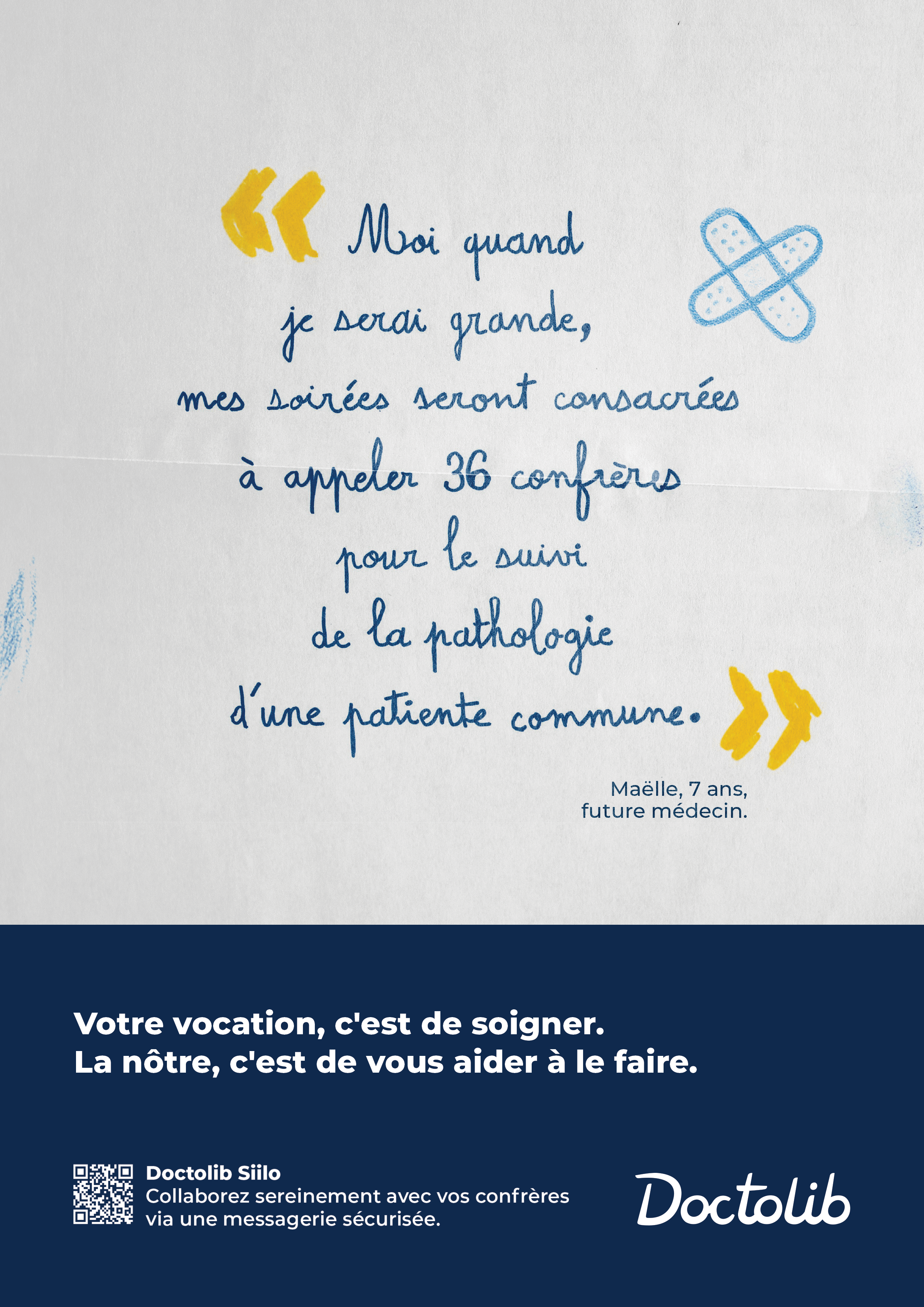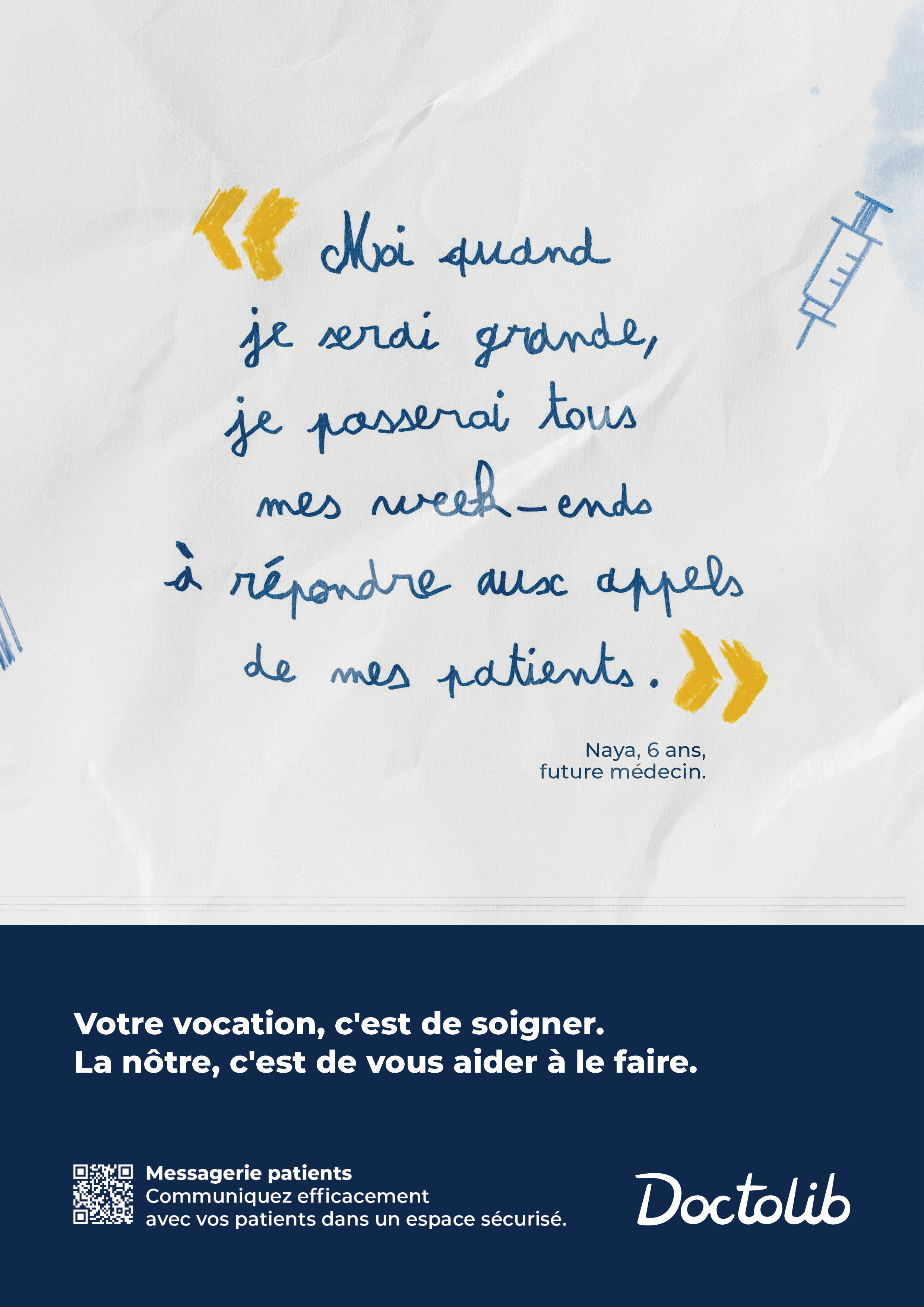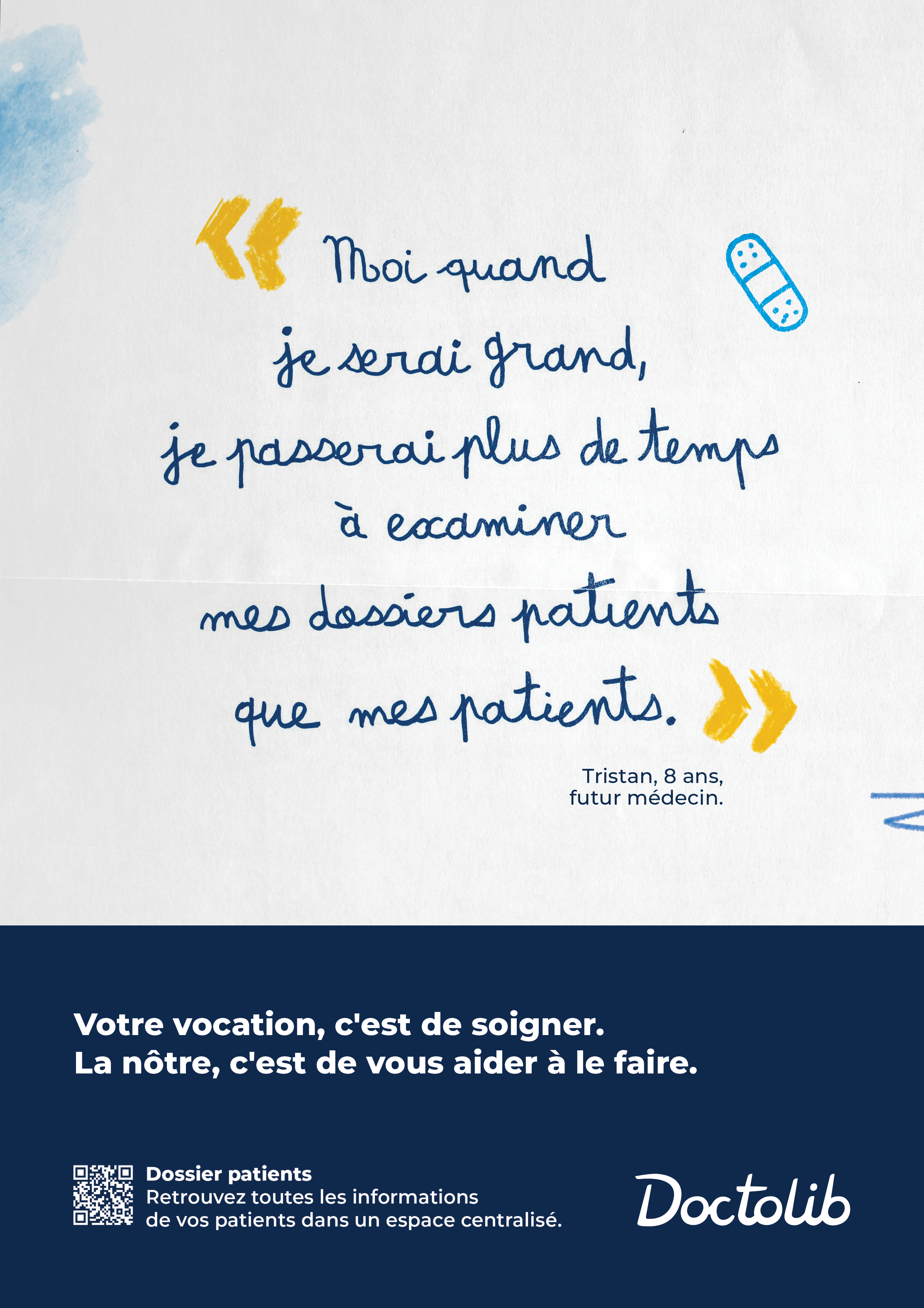 Pour sa nouvelle campagne de marque, Doctolib rend hommage à la vocation des soignants. À travers des films forts, la campagne confronte les rêves d’enfance à la réalité quotidienne des professionnels de santé, faite de tâches administratives qui les éloignent de leur mission première : soigner.